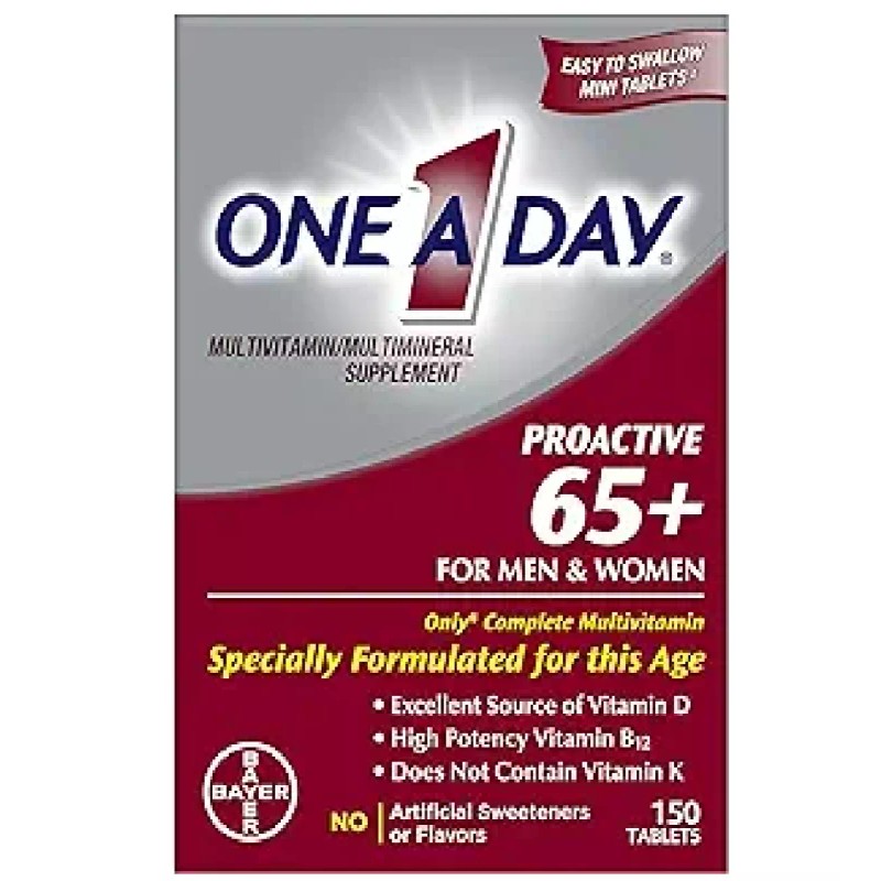 One A Day Proactive 65+, Mens &Womens Multivitamin, Supplement with Vitamin A, Vitamin C, Vitamin D, and Zincfor Immune Health Support, Calcium, Folic Acid & more, Tablet 150 Count