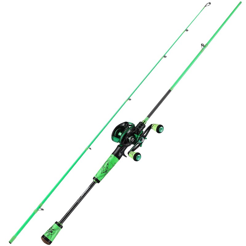 One Bass Fishing Rod and Reel Combo, Baitcasting Combo with SuperPolymer Handle- Green-1.8M -Right Handed