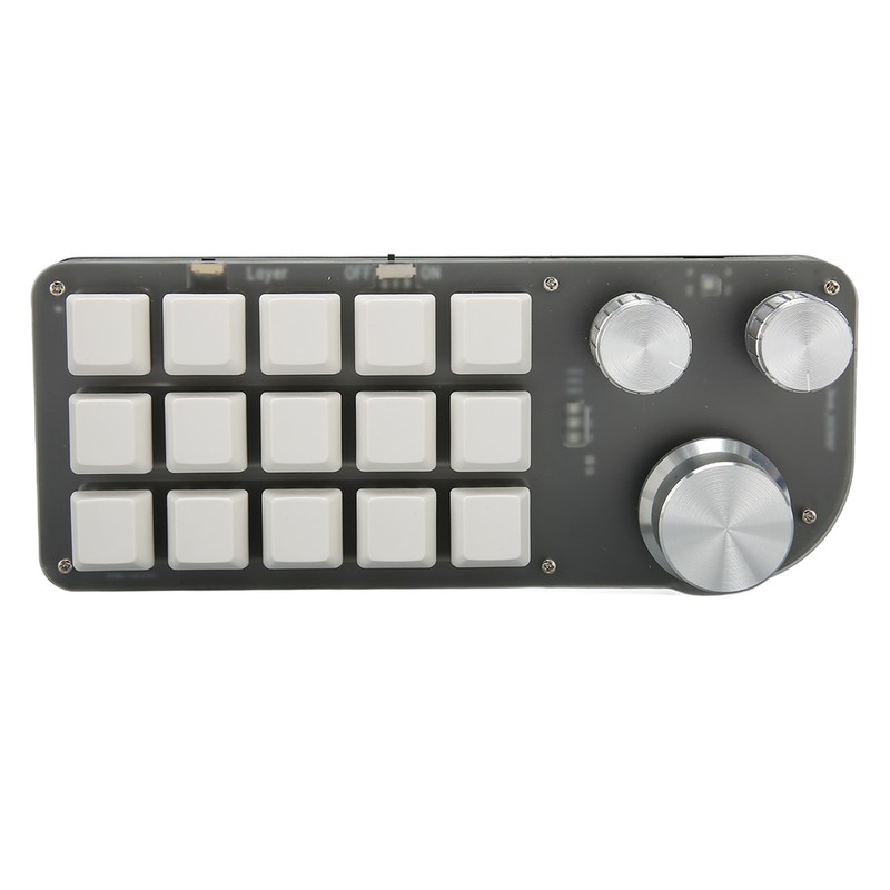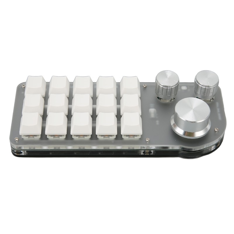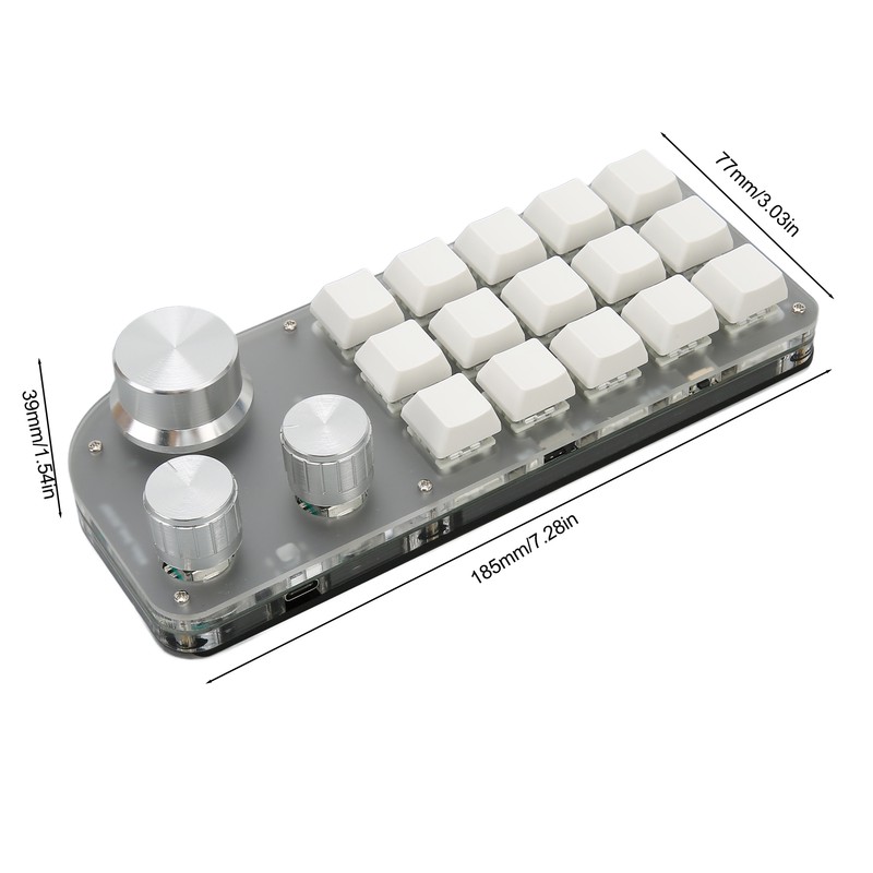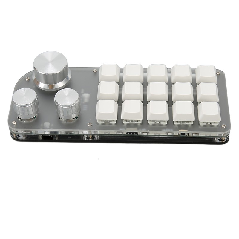 1、15 Keys Mechanical Keyboard: 15 key custom keyboard, with 3 adjustment knobs, the knobs have click function, can be used as left and right mouse keys, support up to 18 characters shortcut superposition. 2、Bluetooth Connection: The keyboard is a dual mode keyboard, which supports Bluetooth and USB connection modes and switches automatically. If there is no operation for 15 minutes, Bluetooth will automatically enter the sleep mode. 3、Multifunctional: All key functions on the standard for Windows keyboard can be set, and complex shortcuts can be realized with one click. With storage function, it can be used on systems that support USB protocol such as for Linux and for OS X after being set up on for Windows systems. 4、3 Helpful Knobs: The knob can be set to zoom in and out, switch songs, play the previous song, next song, volume up, volume down, pause, play and other functions, which is a good helper. 5、Delay Function: You can set a delay of up to 6000 milliseconds. For example, after setting the copy and paste button, you can choose to delay 200 milliseconds before setting other commands. 6、Easy to Use: Mini keyboard with custom function, Type C to USB interface, plug and play. Simple operation, no conflict between multiple keyboards, with RGB function, a variety of light colors adjustable.