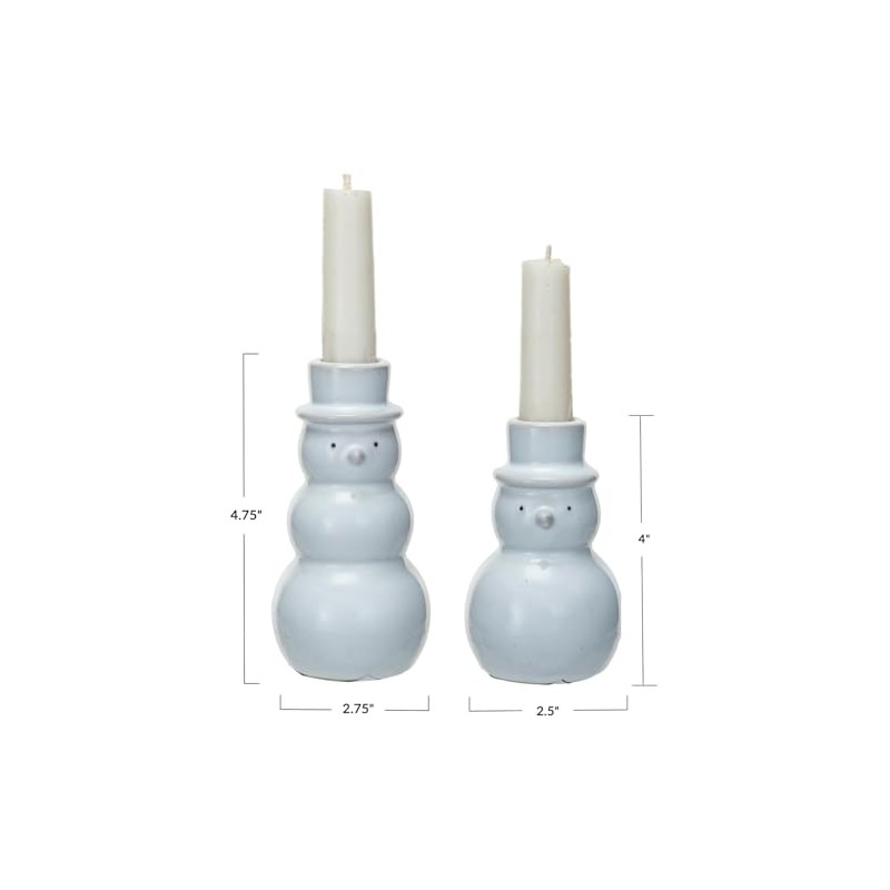 - Set of 2 white stoneware snowman taper candle holders - Add an elegant classic touch to your Christmas home decor this holiday season. White color adds a high end flavor to mantels, tables, and windowsills