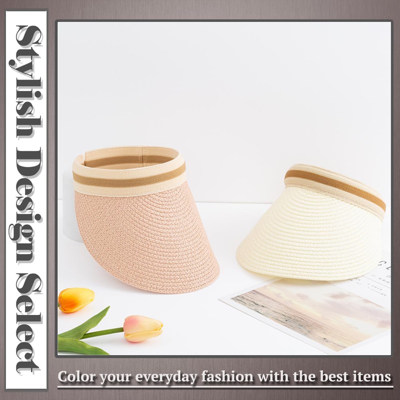 - A women's casual running sun visor with simple color variations and stylish straw design