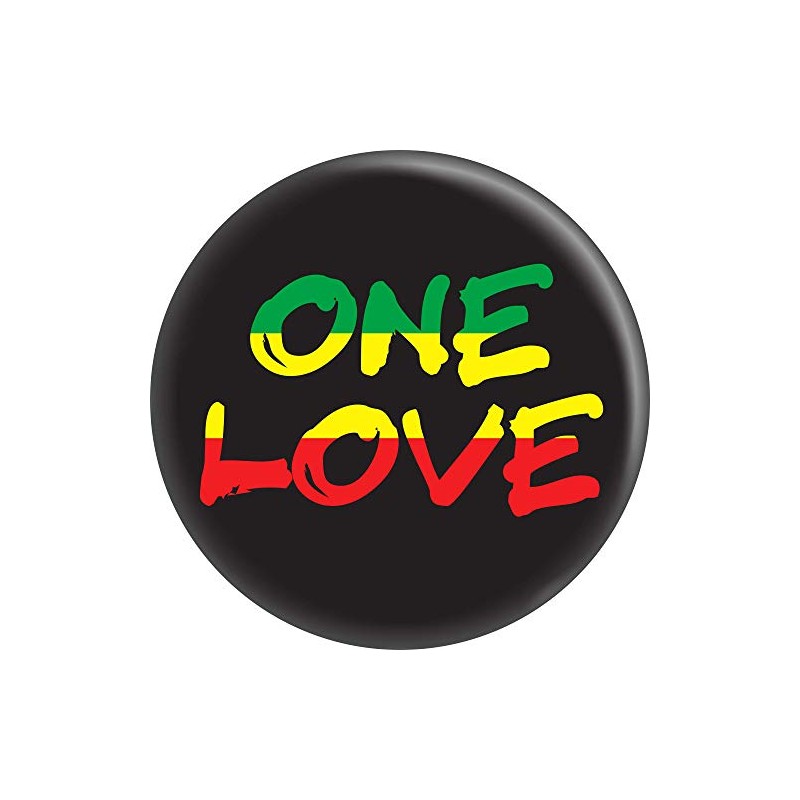 One Love - Rastafari Flag Colors on Black - 1.25" Round Button