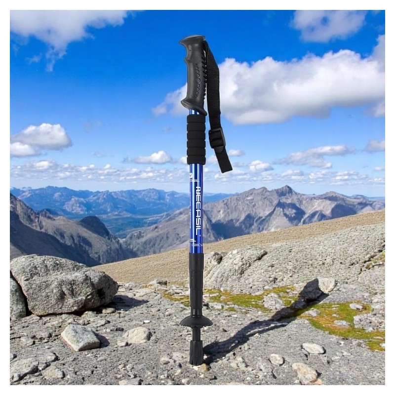 One-mount 4-stage adjustable hiking stick (110cm) (Blue)