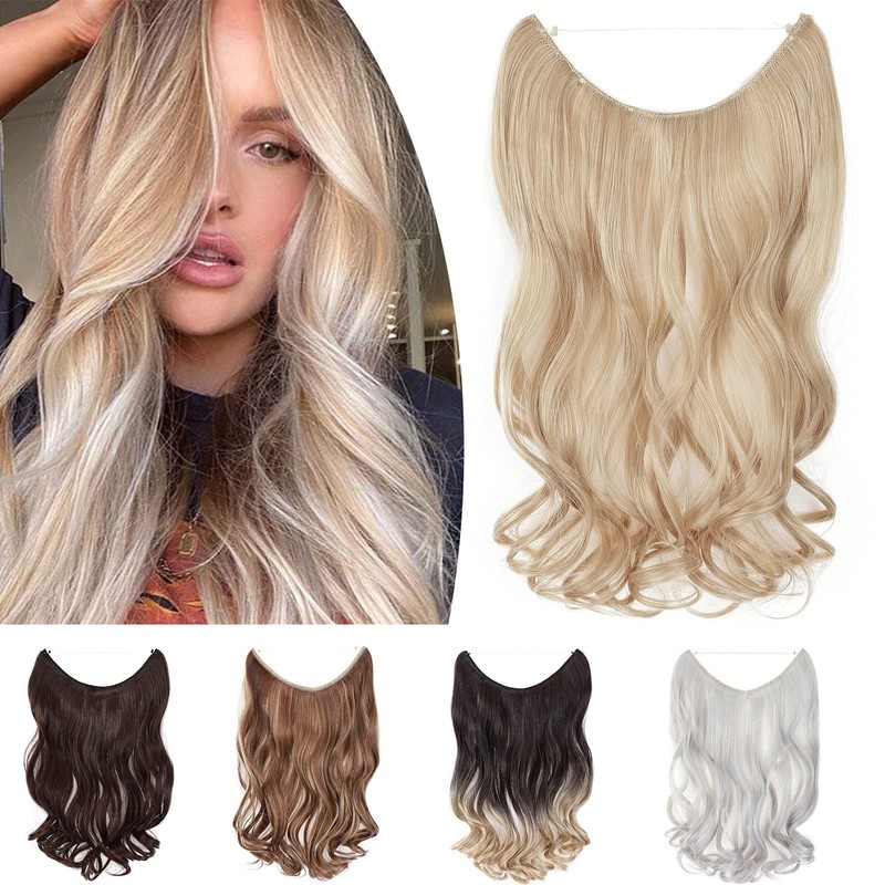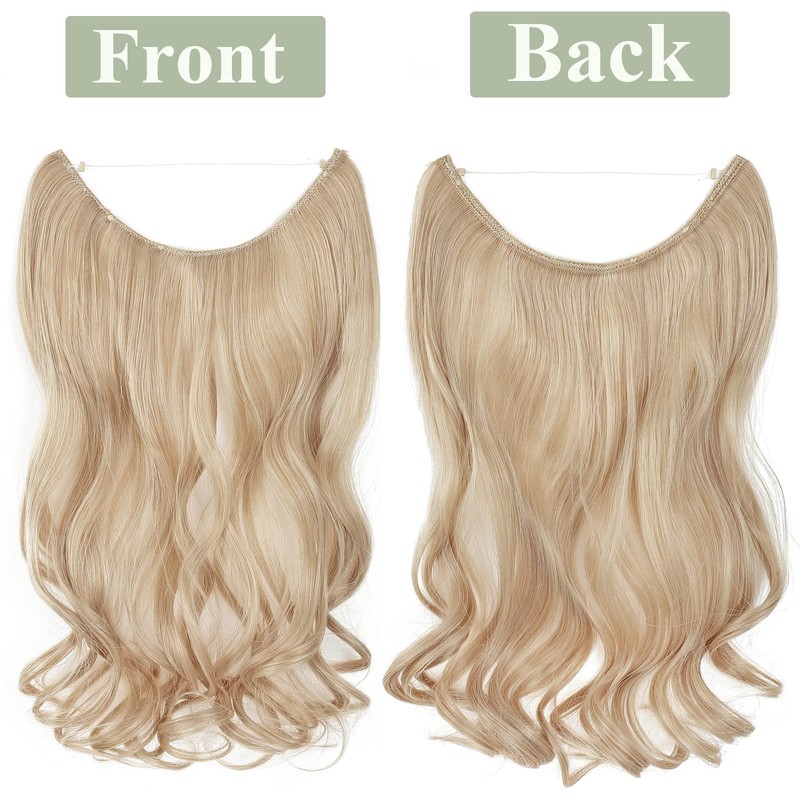 One Piece Wire In Hairpieces Matte Material Invisible Hair Extension Synthetic Wavy For Women Beauty, 20 Inch, Dark Blonde Mix Bleach Blonde