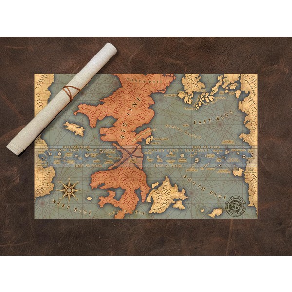Don’t be caught on the Blue Sea without knowing your way around, or you’ll be a sitting duck with no wind in your sails! Printed on a sturdy cotton canvas and measuring approximately 11 x 17″, this cloth map details the world of One Piece, and is a must-have for pirates, Straw Hats, navigators, seafaring captains, and archipelago dwellers. So if you find yourself on the wrong side of the Belt of Calm without wind in your sails, this map of the world of One Piece is sure to help you back to safety. Easy to bundle or roll, this cloth map is great for cosplay, display, or to hang on your war room wall. (Please allow 3-5 business days to prepare / dig your map out of the archives for shipment.) Due to variations in preparation and handling, each scroll may appear slightly different in wear or color than pictured.