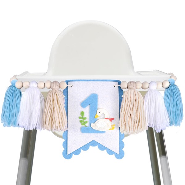 One Silly Goose High Chair Banner, Pre-Strung 1st Birthday Highchair Banner Felt Silly Goose Garland Birthday Decorations for Girls(Blue)