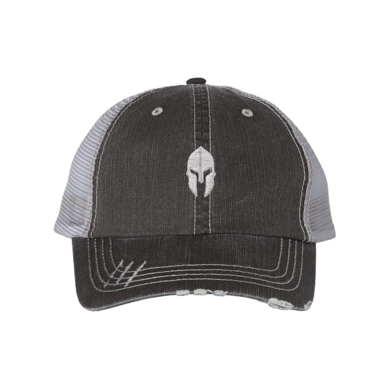 One Size Black/Grey Trucker Spartan Warrior Helmet Embroidered Distressed Trucker Cap