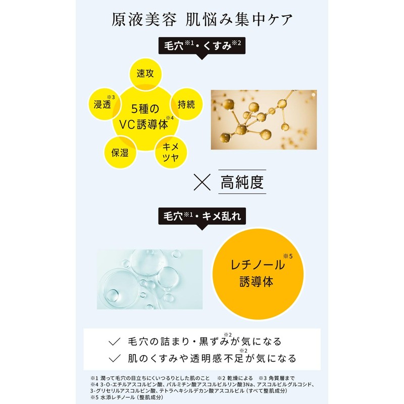 • A concentrated care mask with 5 types of VC derivatives and retinol derivatives, which leads to discreet transparent skin of pores