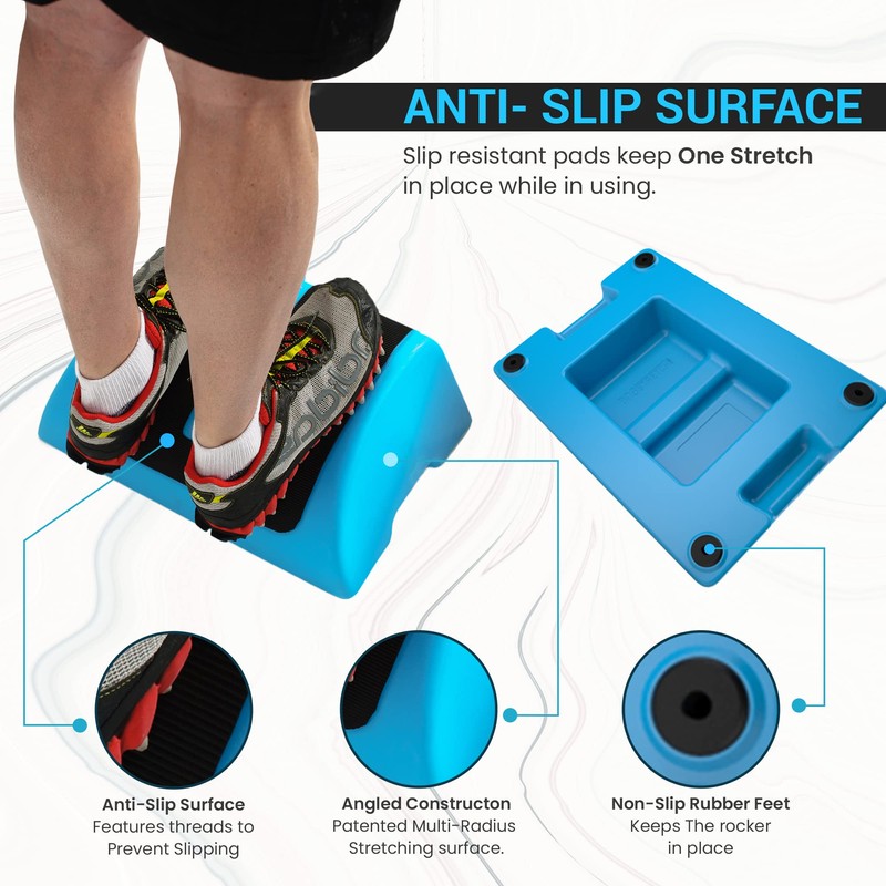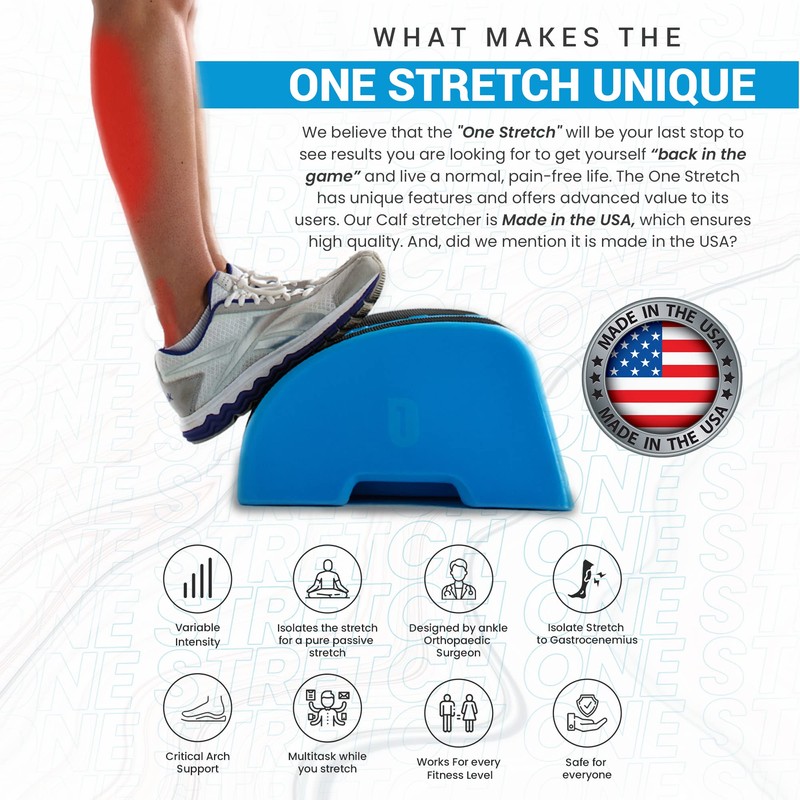 One Stretch - Multitask hands free while you stretch your calves for plantar fasciitis, foot pain, Achilles tendinitis, and more. Made in the USA. (Blue)