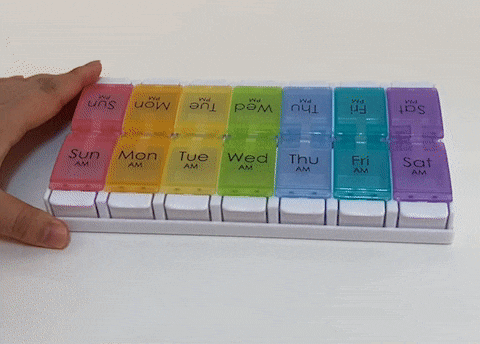 🌈 Organize your wellness routine with our vibrant one-touch pill case, designed for effortless daily management. Say goodbye to cluttered bottles and hello to streamlined living.
