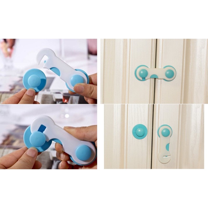 One Touch Rotatable Baby Guard Stopper Door Lock Drawer Cabinet Sliding Door Drawer Drawer Door Tamper Prevention Earthquake Protection (Blue, 6 Pieces)