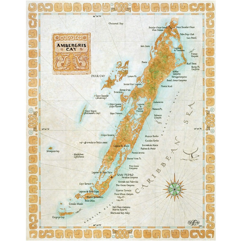 One Treasure Limited Antique Vintage Old World Caribbean Belize Ambergris Caye Map