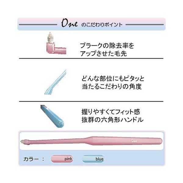 It is called "One tuft brush", also called "Single tuft". The long neck is designed to be elastic so that it does not require pressure. Use the pen grip to lightly repel areas that are hard to reach with a toothbrush or leave residue. Effective for cleaning isolated teeth, hollow dental, behind dummy bridge and orthotics line and brackets. One One Tuft Brush Set of 2 Blue