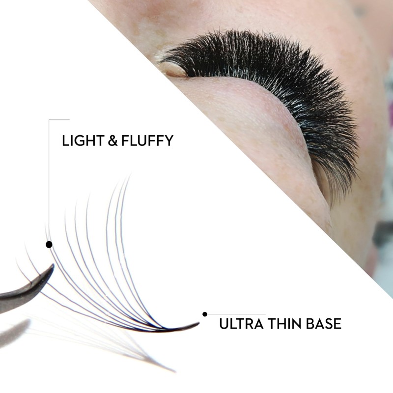 - Each fan is constructed with a thin base to create a cleaner, more natural lash line, reducing bulk and ensuring a comfortable wear for clients.