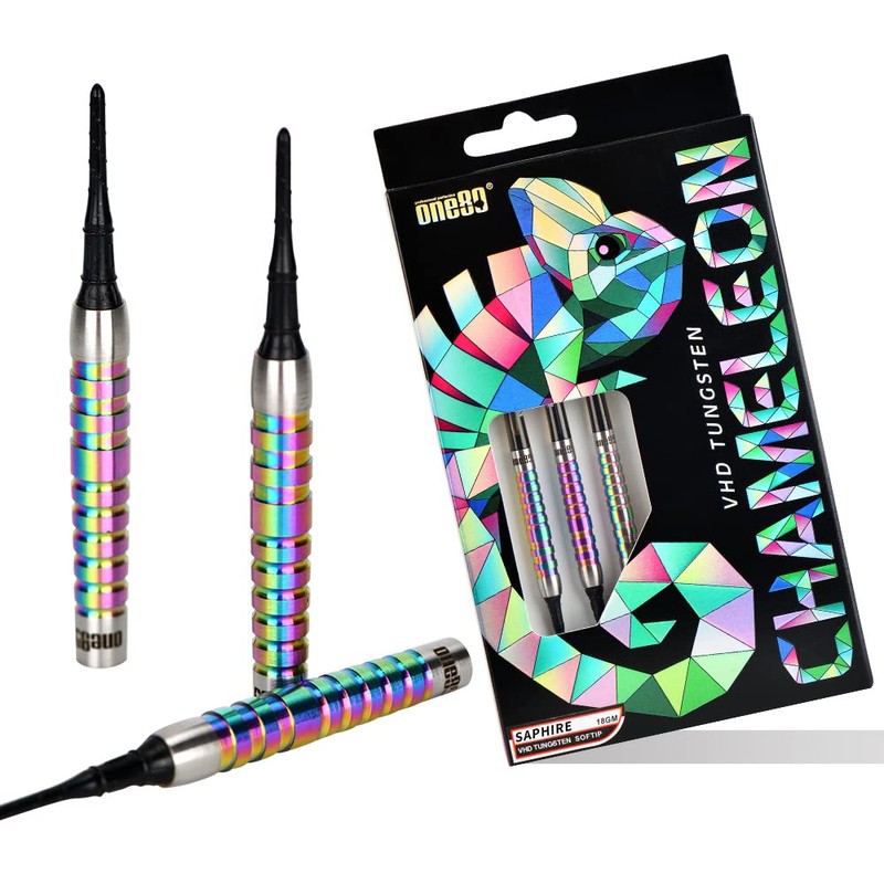 ONE80 90% Tungsten Steel Tip Darts Sets Chameleon, Night Hunter Professional Darts Set (Soft tip - SA - 18g)