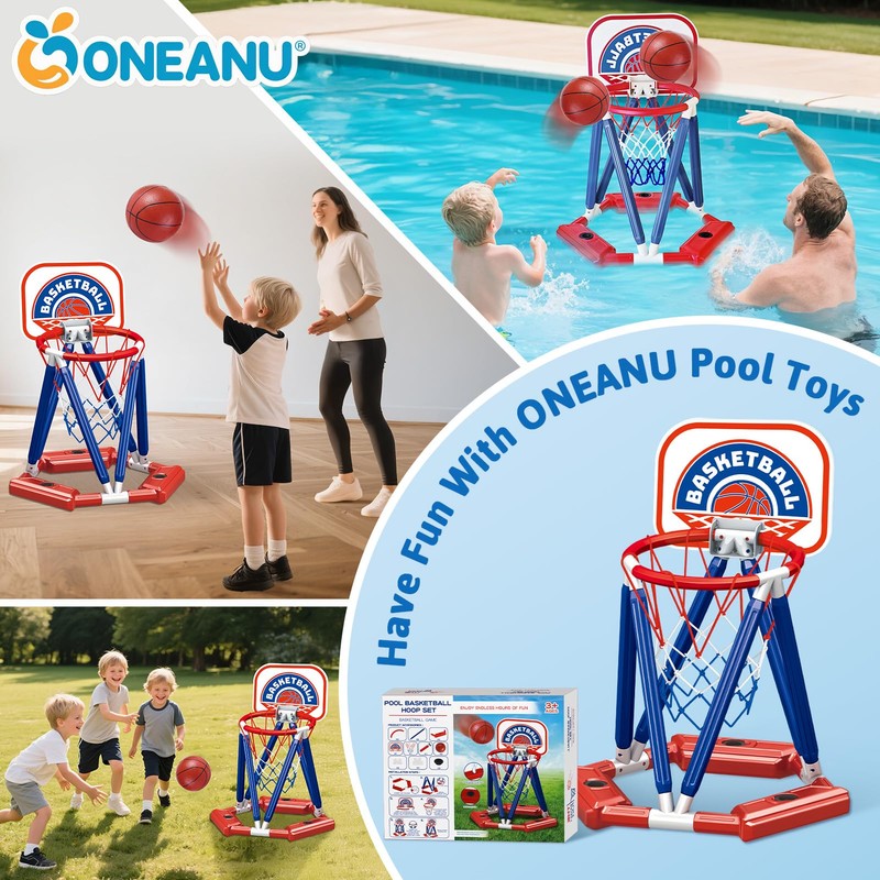 - 【Best Summer Toy Gift】ONEANU Basketball hoop pool can use in pools, beaches, backyards, or even lakes! Take your pool basketball hoop floating anywhere for endless fun in basketball