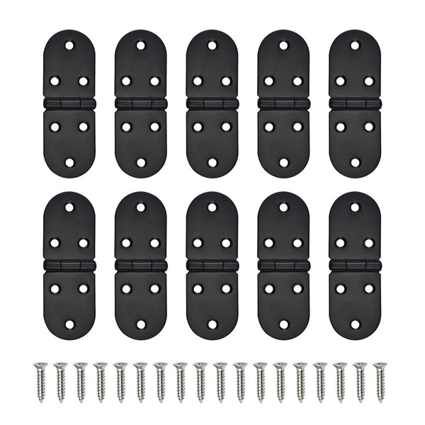 ONEBO 10 Pcs Hinges with 60 Pcs Hinge Screws - Door Hinges, Folding Flip Top Hinges for Wood, Window, Folding Table, Cabinets, Kitchen & Wardrobe Doors (Black)