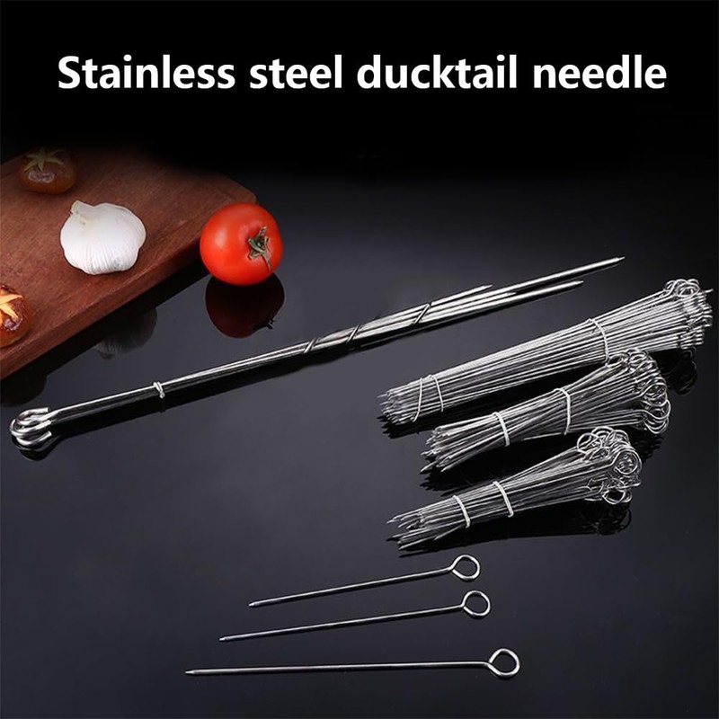 - Versatile: The roasting needle with a round hole in the tail can not only be used as a barbecue skewer, but can also be used to sew the opening of the roast duck to keep the delicious roast duck juice inside the roast duck. Vertical grill skewers compatible with air fryer, can be used for grill, flat grill, grill box hanging grill, air fryer vertical grill, etc, helps your grilled kebabs heat evenly