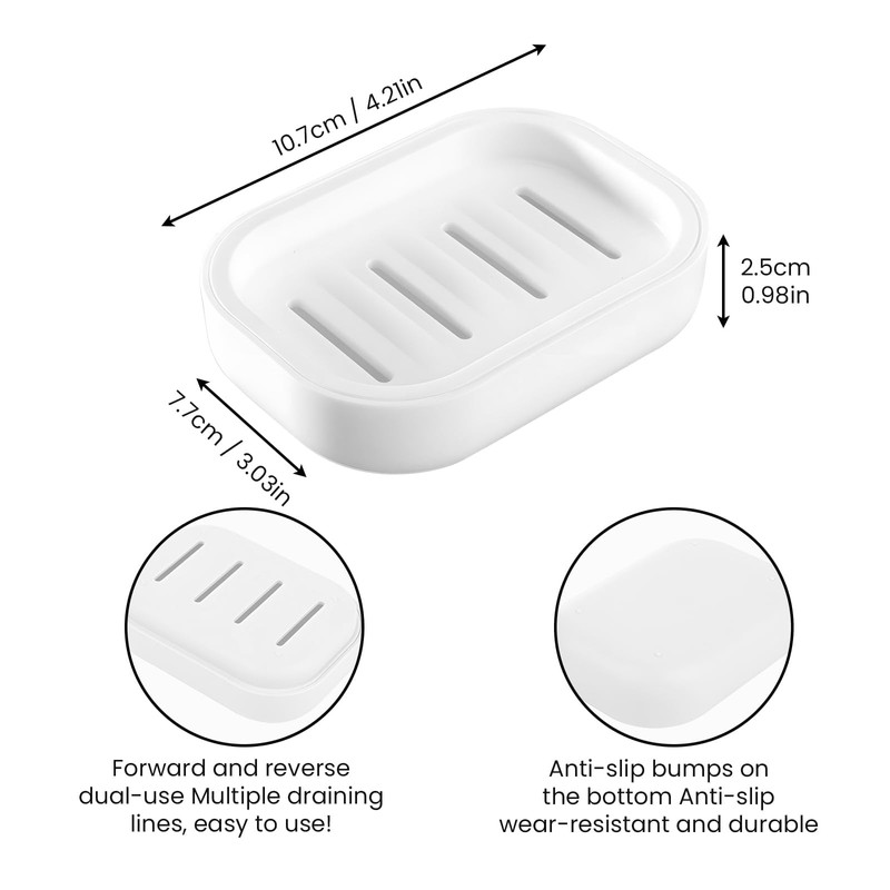 - 【High Quality Material】This soap dish is crafted from premium, thickened plastic material, making it sturdy and shatter-resistant, as well as slip-proof and wear-resistant, ideal for use in wet and slippery environments. Furthermore, its edges and corners are smoothly designed for safe usage.
