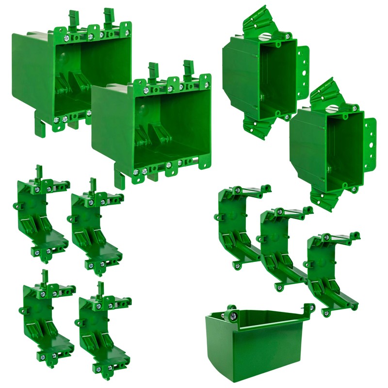- Complete Bundle for New and Retrofit Applications | Includes a combination of new and old work components: 2 Old Work Double Gang Boxes, 2 New Work Single Gang Boxes, 4 Old Work Expansion Rings, 3 New Work Expansion Rings, and 1 New Work Sidecar for versatile installation options.