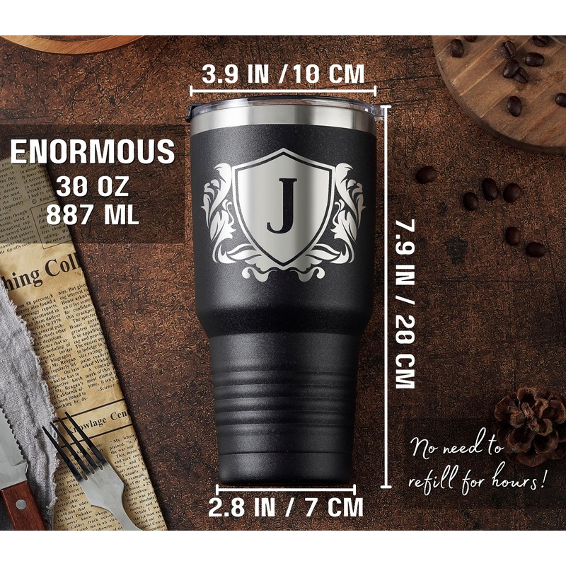 - Perfect Gifts for Men Who Have Everything: Give the ultimate combination of practicality and thoughtfulness with Onebttl's personalised travel mug! This unique present is perfect for any occasion—birthdays, holidays, or as a thank-you gift. The shield design and personalised initial add a personal touch, making it a memorable gift that anyone will appreciate. Show someone you care by giving them the gift of convenience, style, and functionality with our double-wall insulated travel mug!