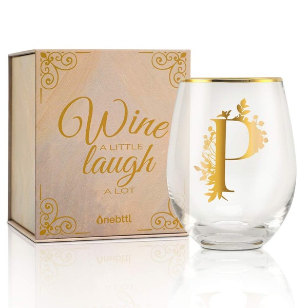 Onebttl Unique Stemless Wine Glasses, Initial Wine Cup for Red or White Wine - 18oz, Monogrammed, Gold - for Women, Girls, Female, Her, Friends, Coworkers, Clients - for Birthday, Christmas