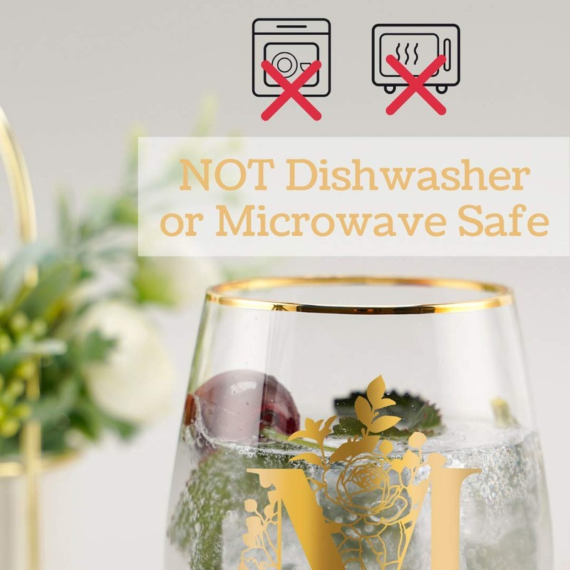 - FUN COLLECTIBLE: Give your glassware collection a little sparkle with this beautiful monogrammed gold-rimmed stemless wine glass.