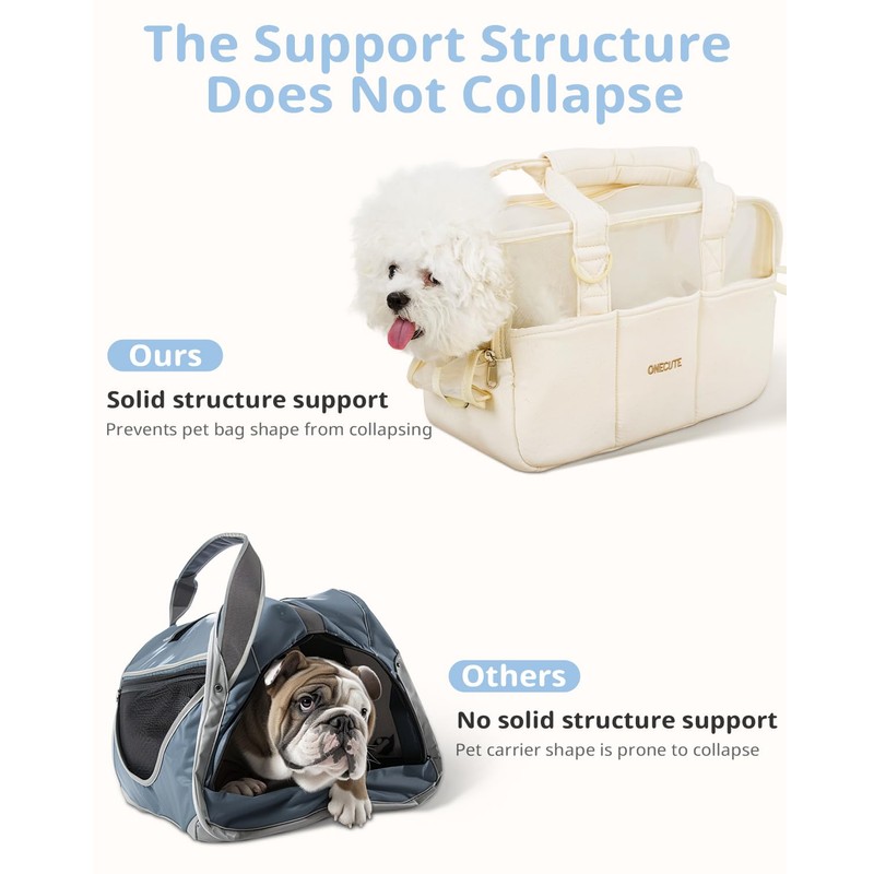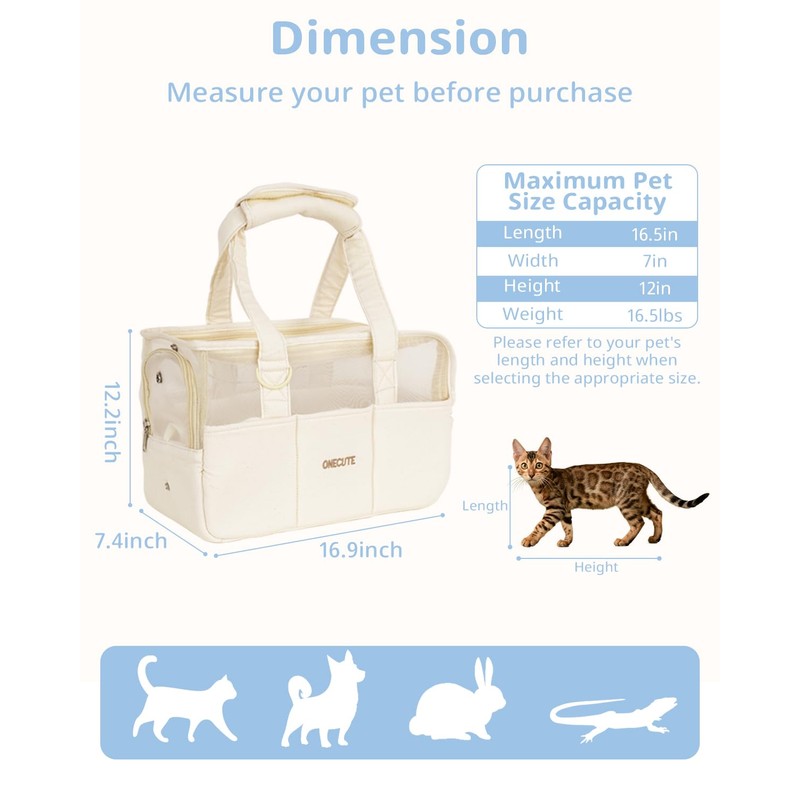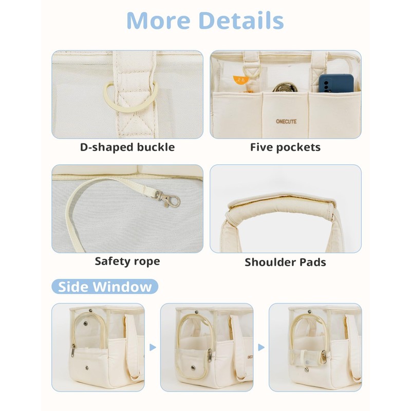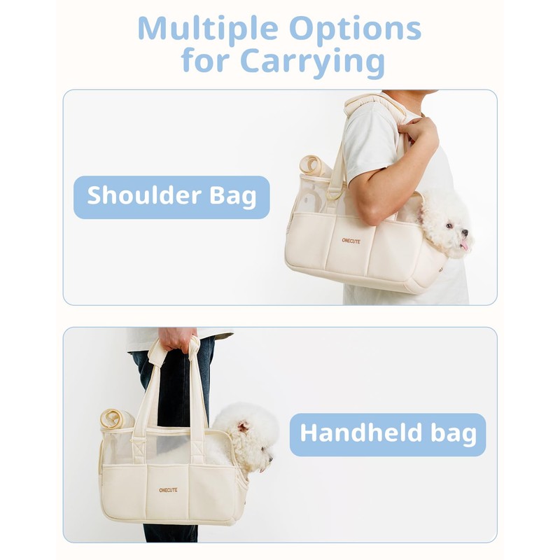 ONECUTE Dog Purse Carrier for Small Dogs Rabbit cat with Large Pockets, Cotton Bag, Dog Carrier Soft Sided, Collapsible Travel Puppy Carrier (Beige Breathable, 17.0" L x 7.5" W x 12.0" H)