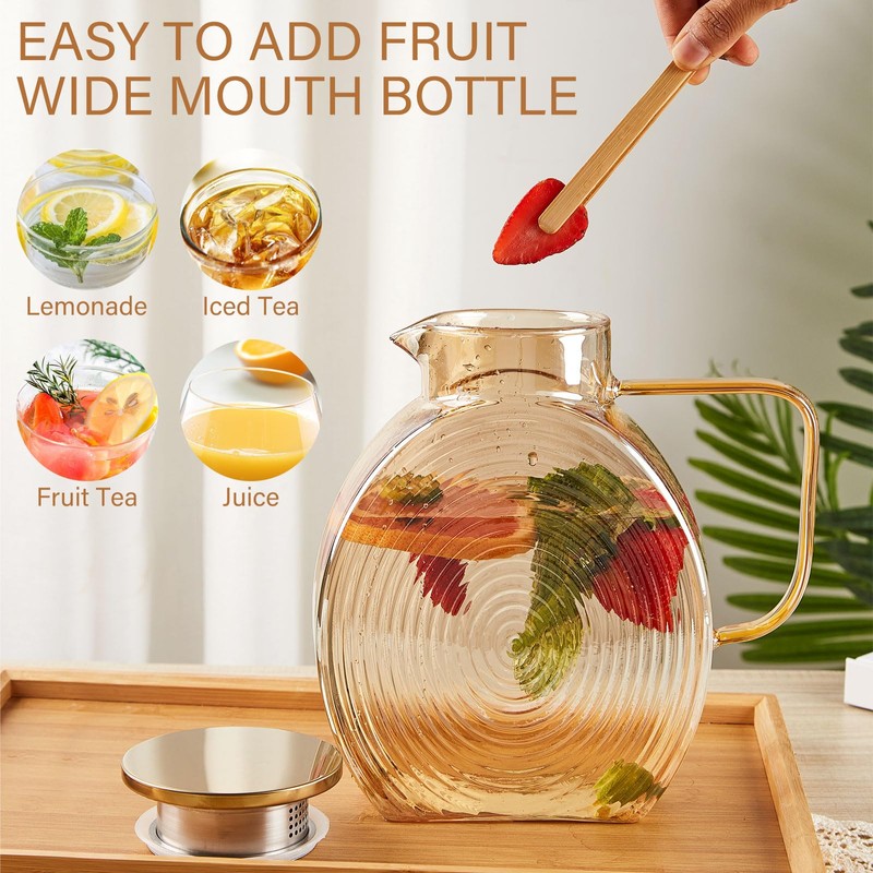 OneDream OneDream Glass Pitcher with Lids for Fridge Door, 2.5l/84oz Large Iced Tea Pitcher with Handle, Borosilicate Water Jug for Sun Tea, Fruit Juice, Drinks, Lemonade, Cold or Hot Beverages, Champagne