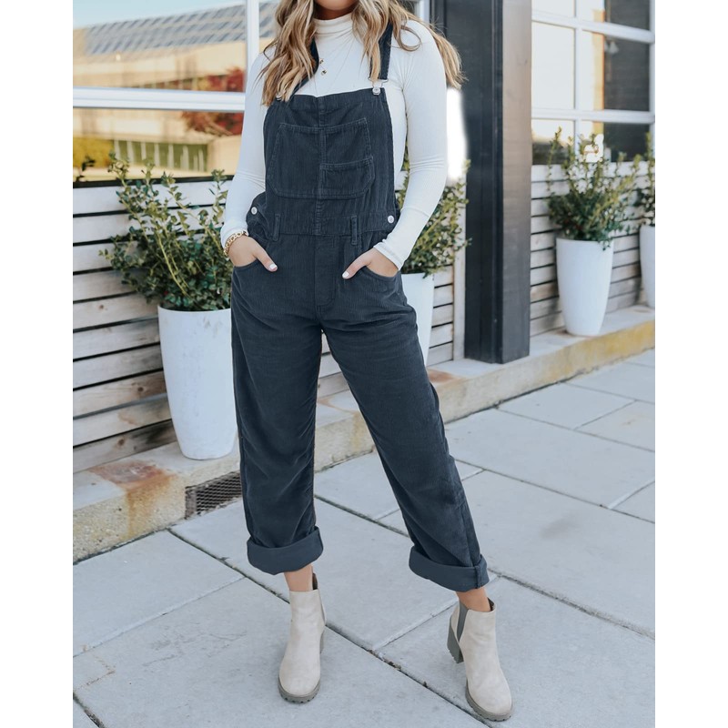Overol de pana informal con bolsillos y tirantes ajustables para mujer