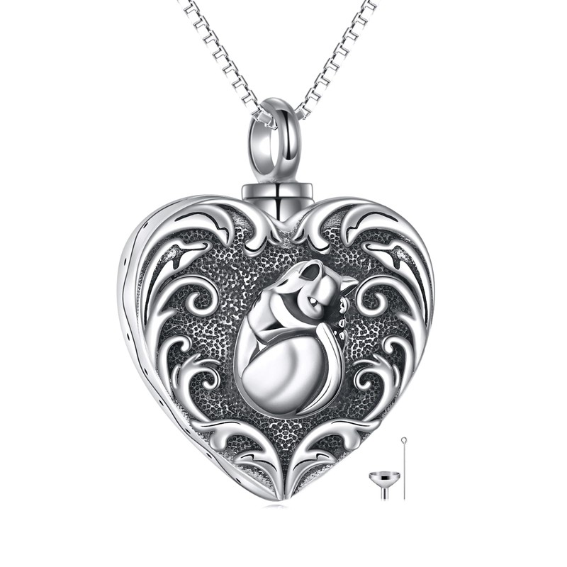 - Design :This cremation jewellery for ashes, designed with heart urn pendant and cat , symbolizes the precious memories between you and your pet. To be your loyal guardian in a special way and always accompany you around. .
