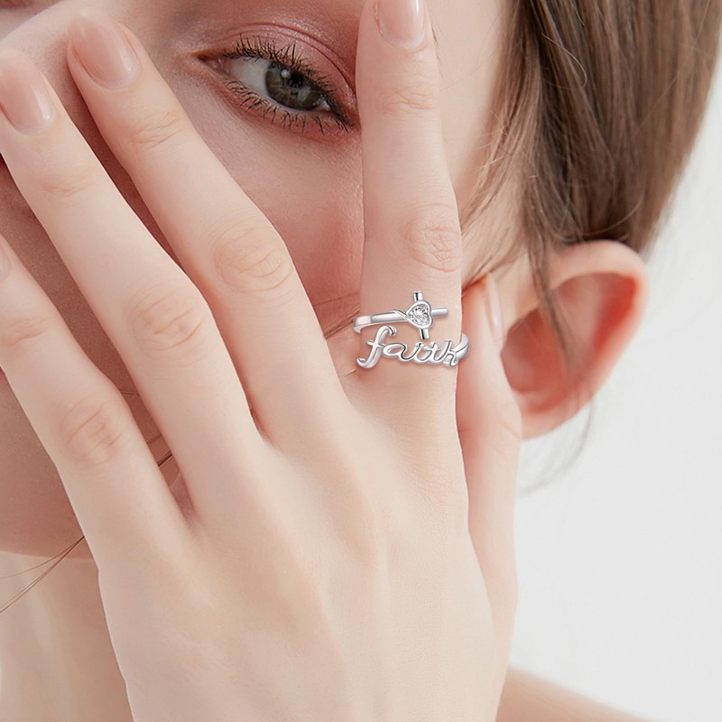 ONEFINITY Faith Ring 925 Sterling Silver Cross Rings Adjustable Ring Faith Jewellery Gifts for Women
