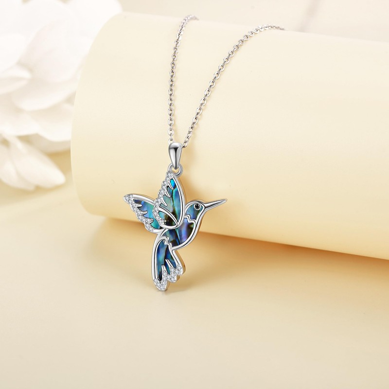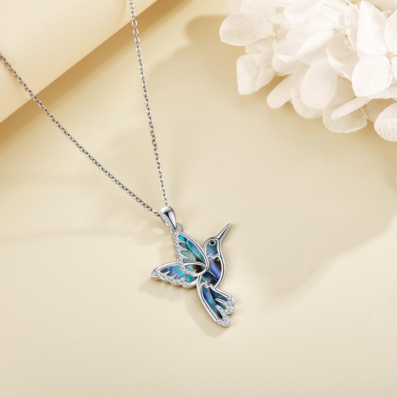 Hummingbird Necklaces 925 Sterling Silver Humming Bird Pendant Necklace Abalone Shell Hummingbird Jewellery for Women