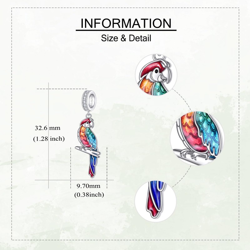 - 925 silver parrot charm: parrot charm beads are of high quality 925 silver, no nickel, no lead, hypoallergenic, comfortable to wear, is a good choice for allergy sufferers