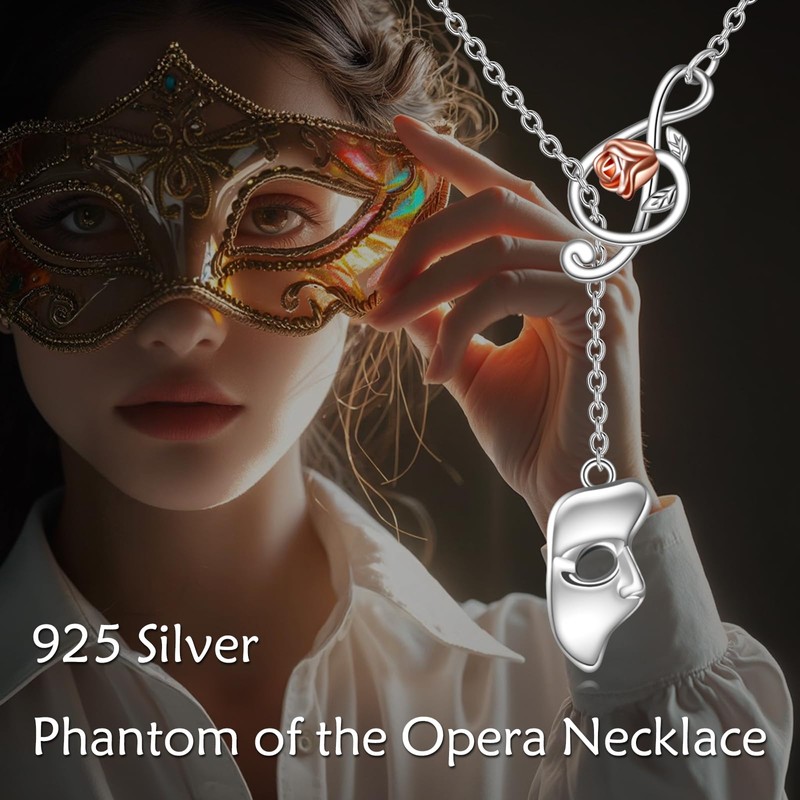 ONEFINITY Phantom of the Opera Necklace for Women 925 Sterling Silver Phantom of the Opera Lariat necklace Music Theatre Jewellery Gifts