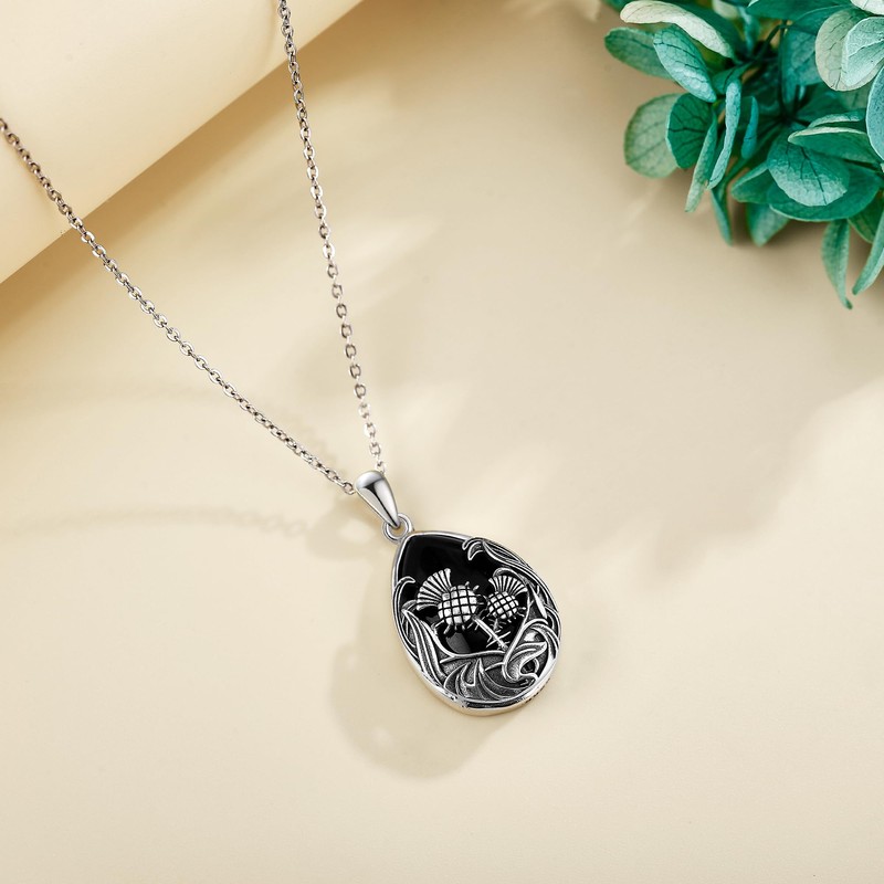 - Material: 925 sterling silver Scottish thistle necklace with black agate, nickel-free, cadmium-free, lead-free, and this jewellery is a good choice for people with sensitive skin.