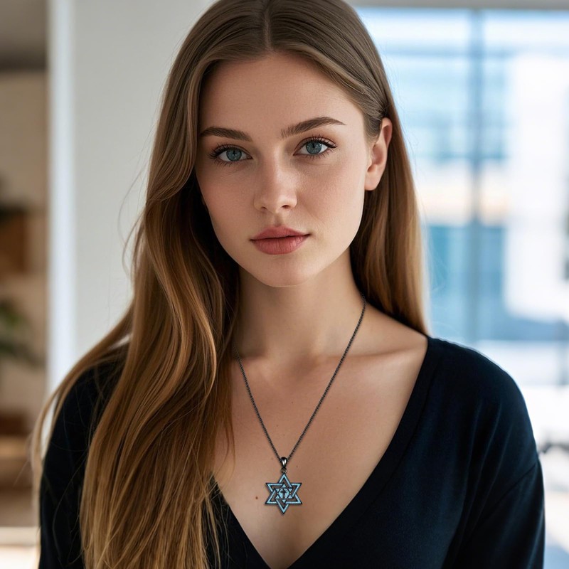 Star of David Necklace for Women 925 Sterling Silver Star of David Cross Pendant Necklace Turquoise Jewish Star Necklace Star of David Amulet Jewellery for Men Women