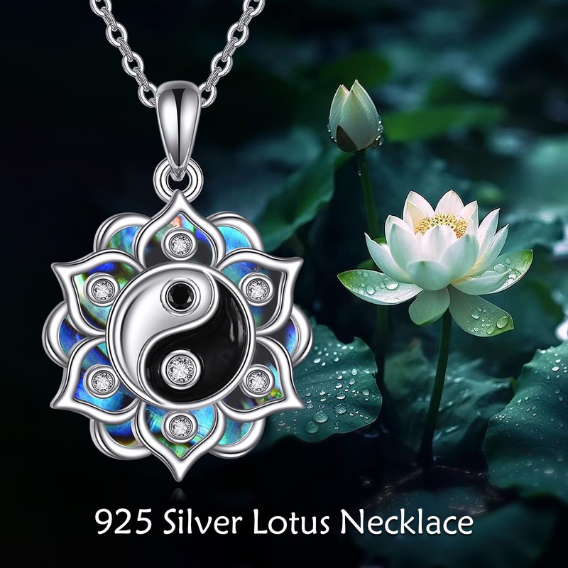 Yin Yang Lotus Necklace 925 Sterling Silver Lotus Pendant Necklace Yin Yang Lotus Jewelry Gifts For Women