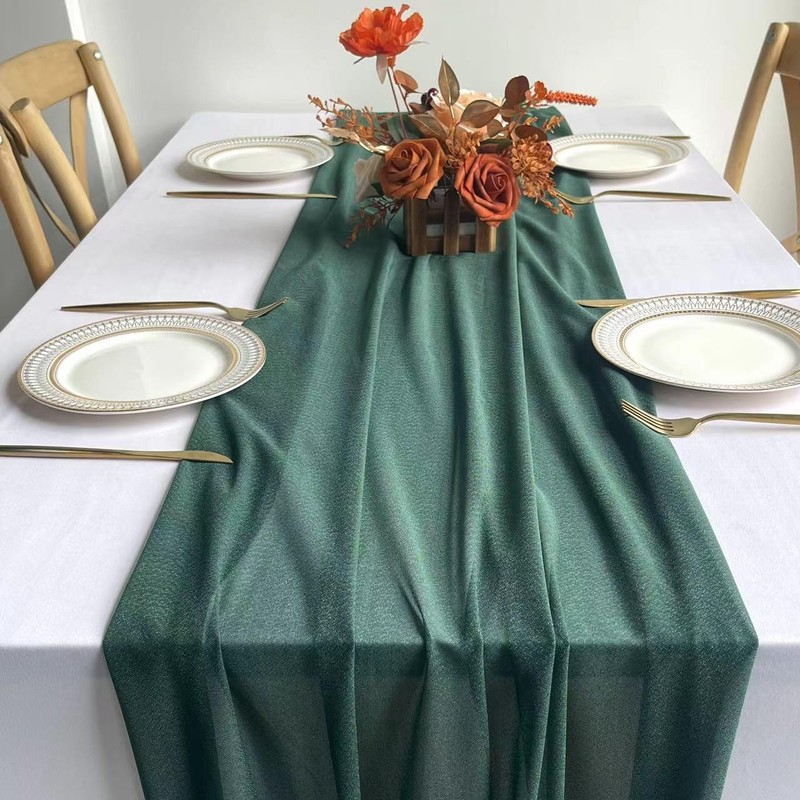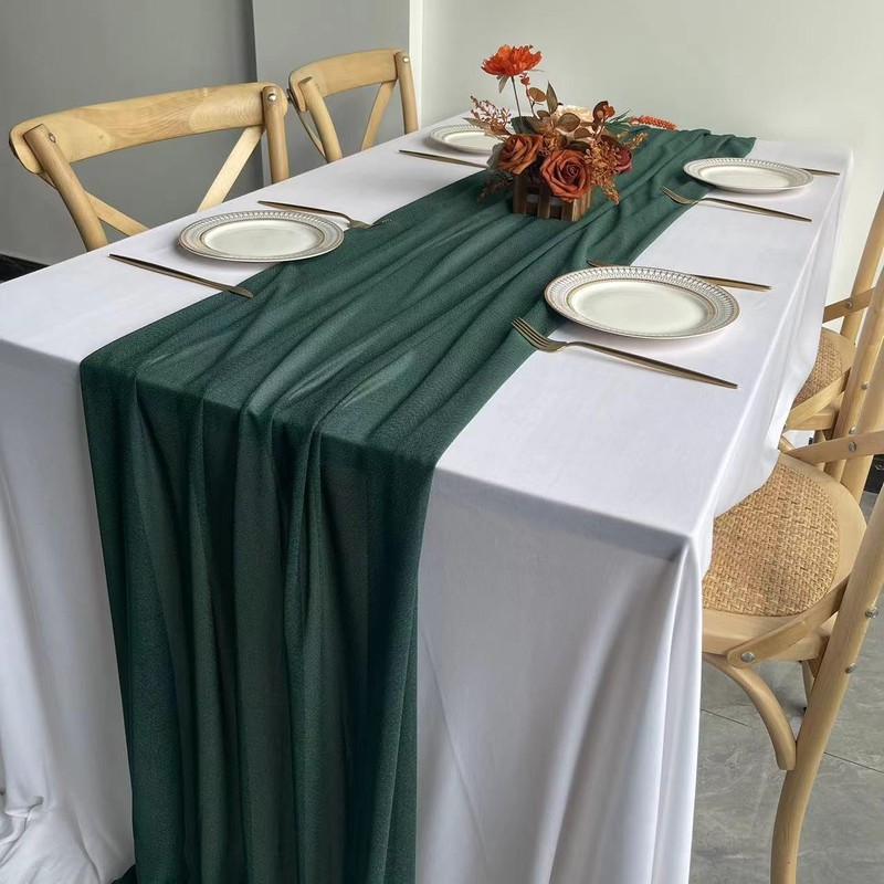 onefitow Chiffon Tablecloth, 30x120 cm, Transparent, for Birthday Parties, Thanksgiving, Baby Showers, Weddings (Emerald)