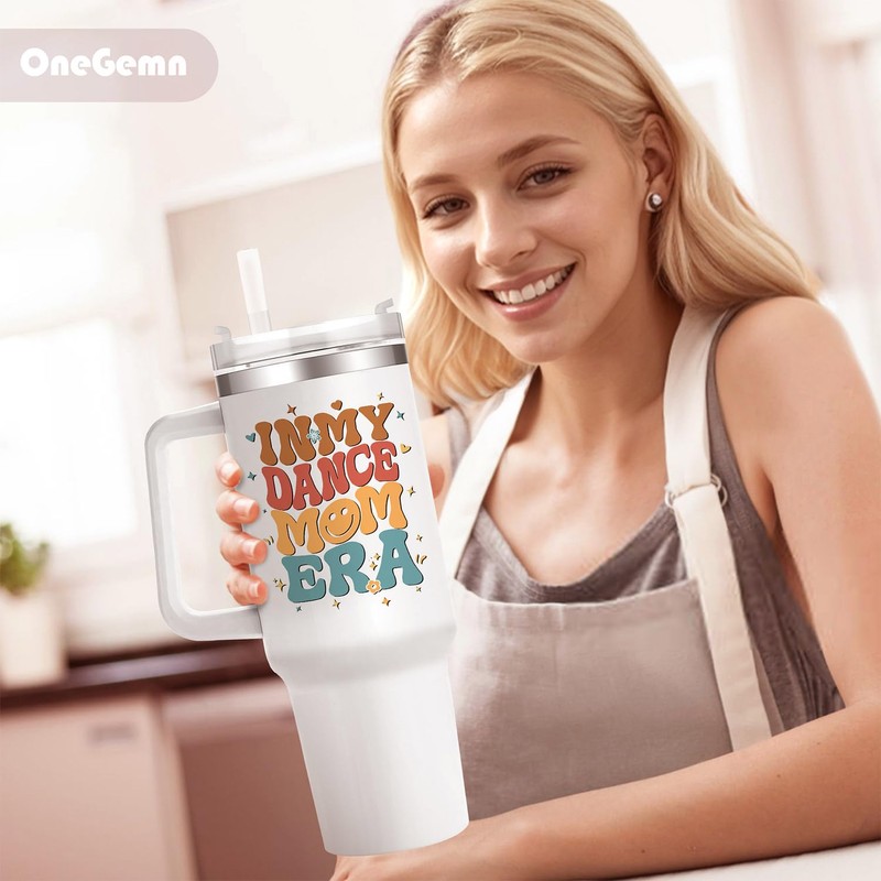 OneGemn Dance Mom Tumbler with Handle,Dance Mom Gifts for Women - 40 oz Dance Mom Cups Tumbler with Lid and Straw - Funny Dance Mom Gifts for Mothers Day,Dance Team Mom Gift for Birthday Christmas