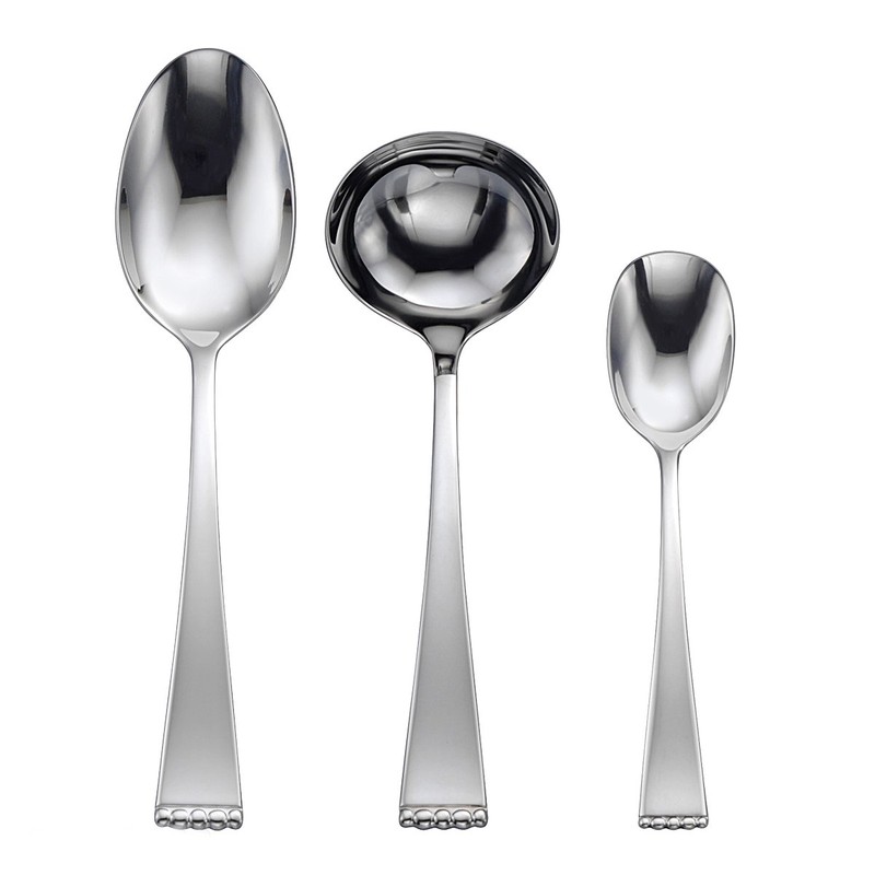 - 3-Piece Hostess Set includes: large serving spoon, gravy ladle and sugar spoon.