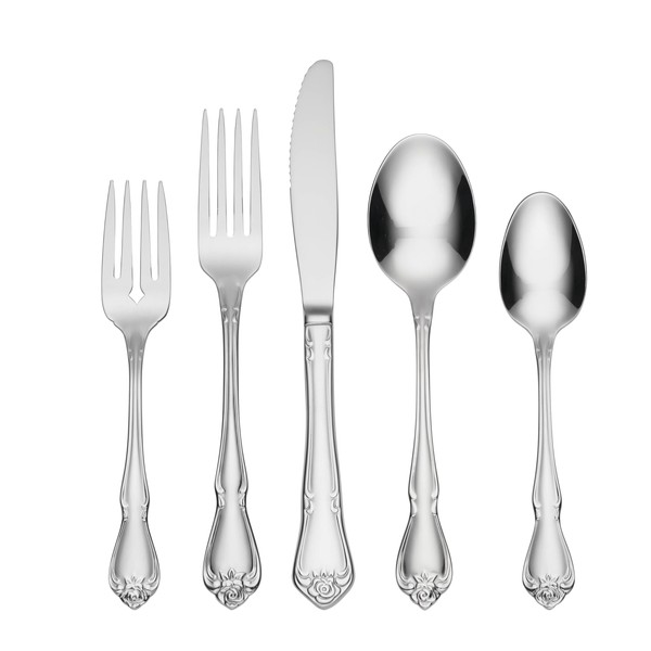 Oneida True Rose 45 Piece Everyday Flatware, Service for 8, 18/0 Stainless Steel, Silverware Set, Silver