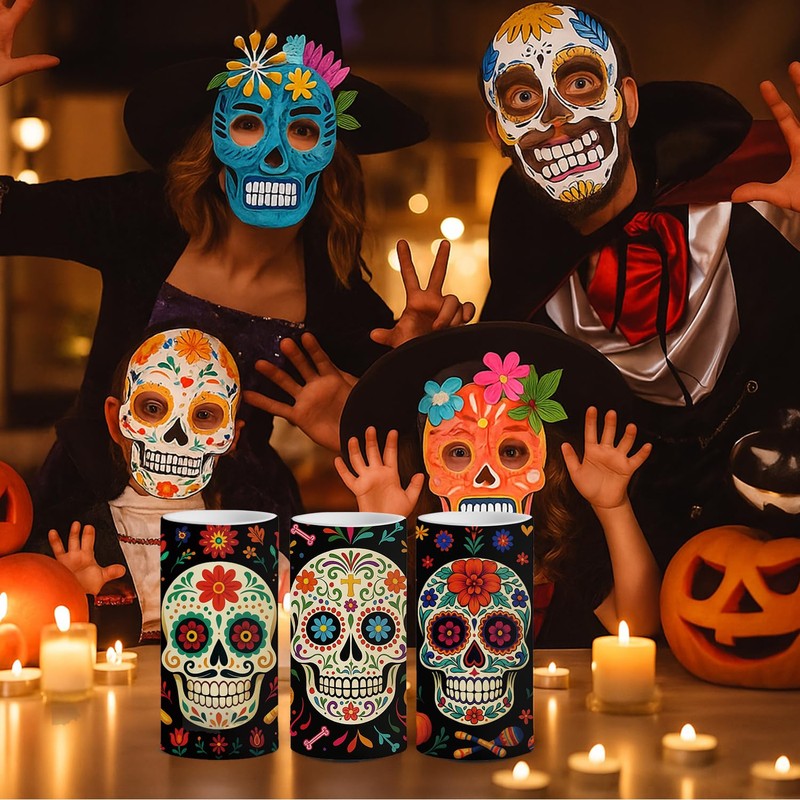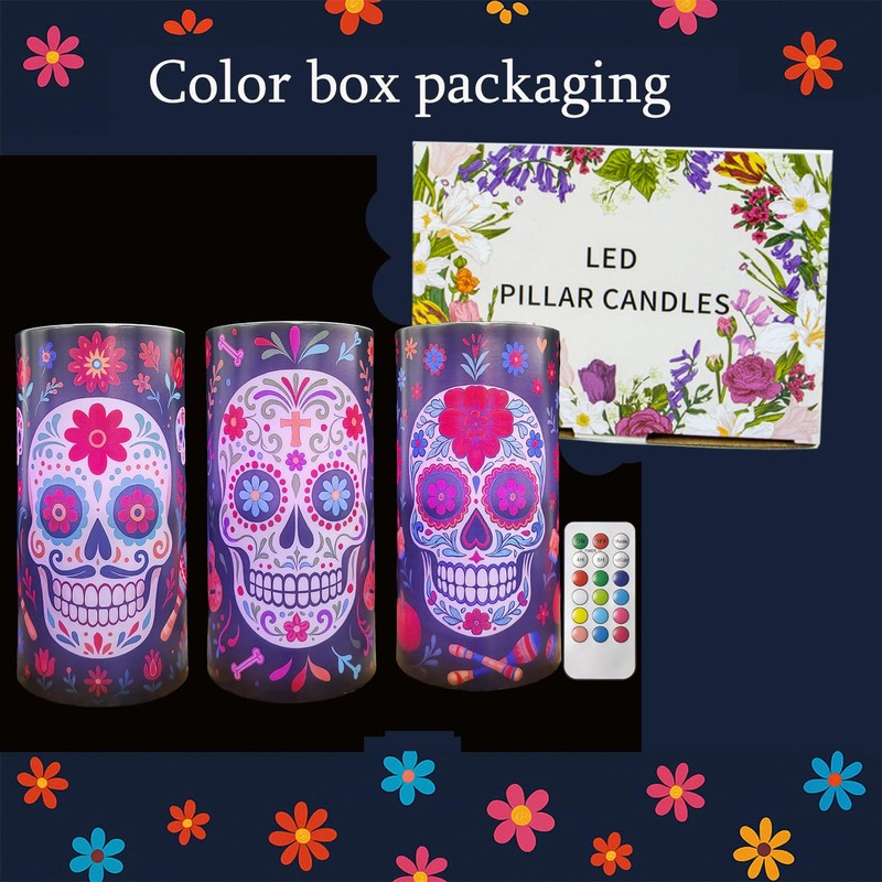 - 【Day of The Dead Theme Design】These LED flameless candles for party are designed in the theme of day of the dead, featured with many classic elements, like skeletons, flowers, patterns, and so on, creative, attractive and delicate, full of scary feels, easy to get others' attentions.