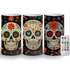 ONEIHOMM Dia De Los Muertos Flameless Candles with Timer Remote 3 Pack Halloween Flameless LED Candle Battery Operated Sugar Skull Day of The Dead Decoration