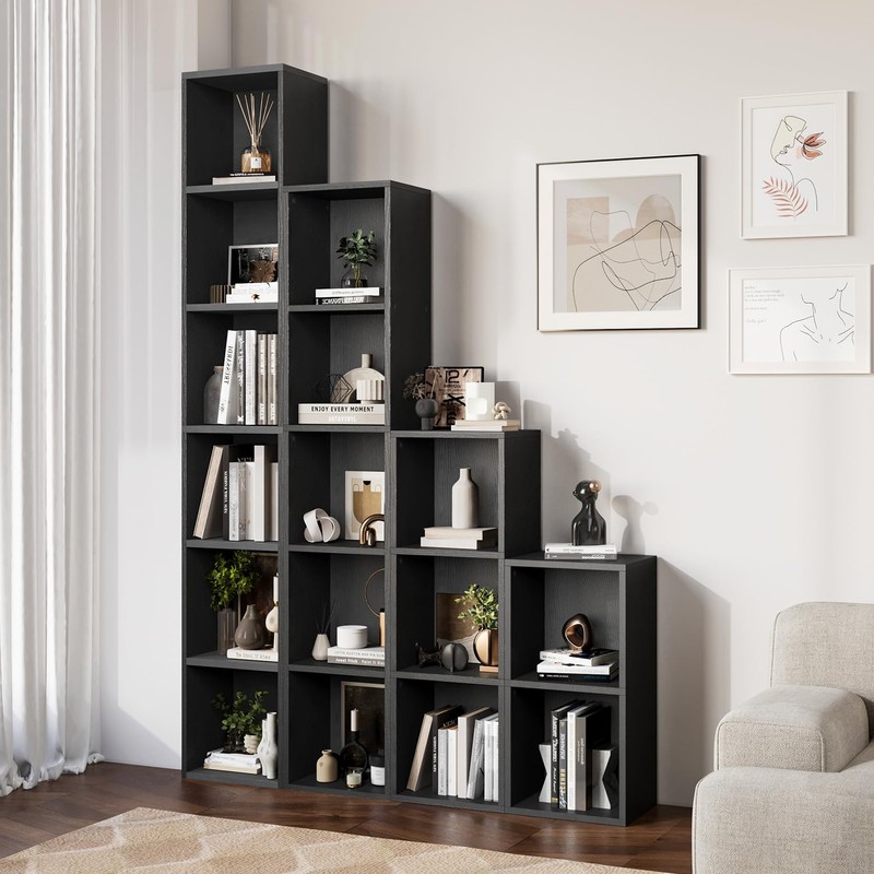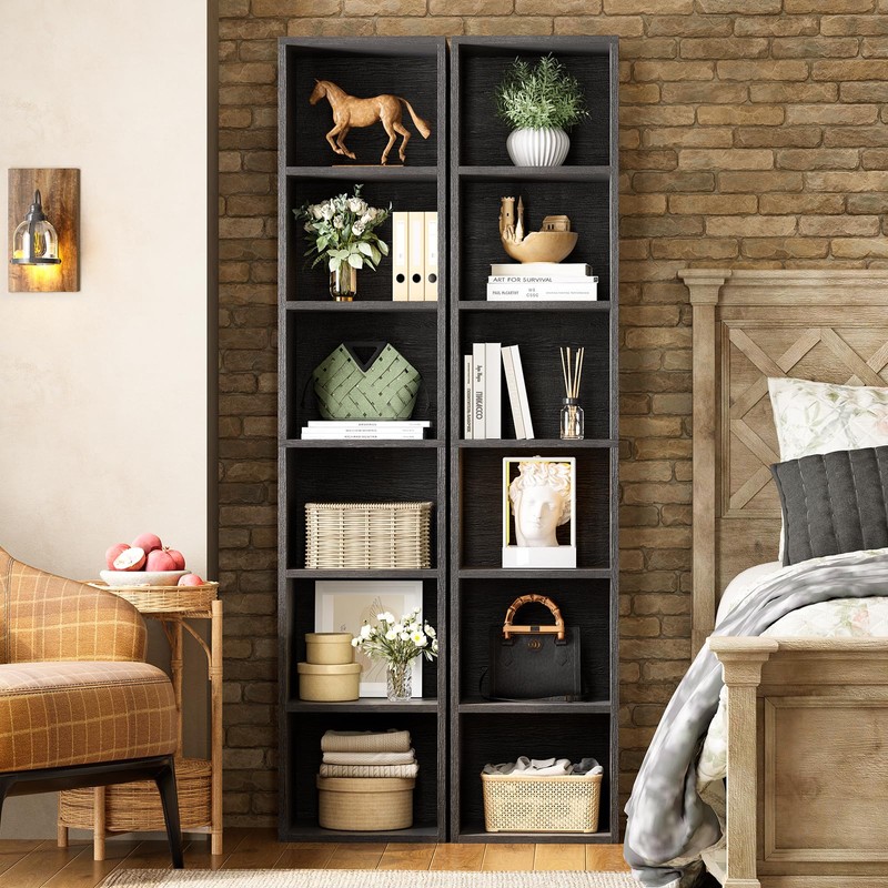 - Durable and Stylish Construction - Made from high-quality, waterproof, and scratch-resistant particle board, this 6-tier bookshelf measures 2*(11.8” × 9.3” × 59.5”)offering a durable and elegant addition to any room. Its simple design seamlessly complements most decorative styles