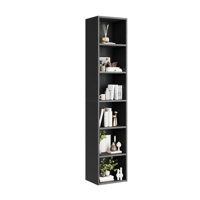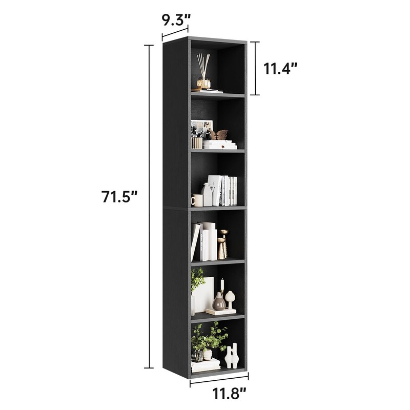 oneinmil 6-Tier Bookshelf 71.5'' Tall Narrow Set of 2 Modern Corner Bookcase Cube Display Rack Compact with Storage Space CD Storage Cabinet for Home Office (Black, 2 Pack)
