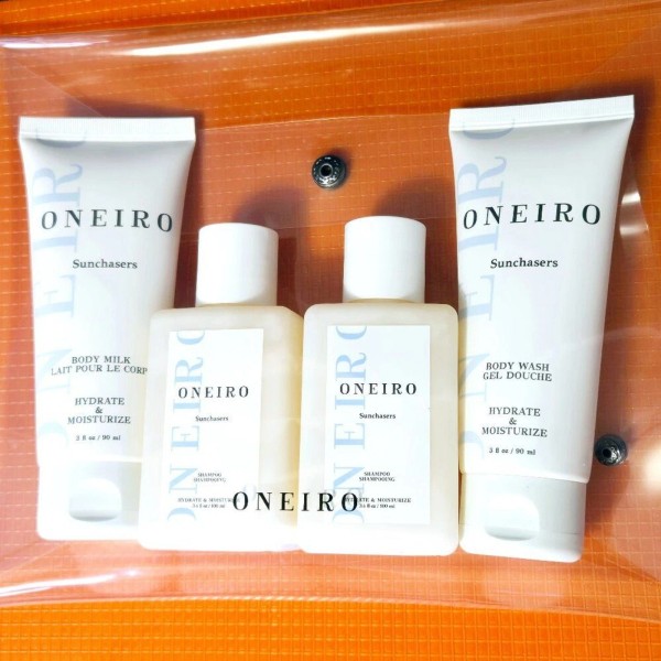 Oneiro NEW 5 PC SET ONEIRO SUNCHASERS BODY WASH, BODY MILK, SHAMPOO & TOTE SPA SET