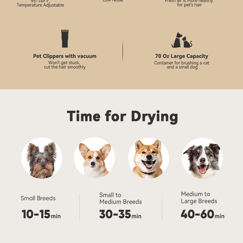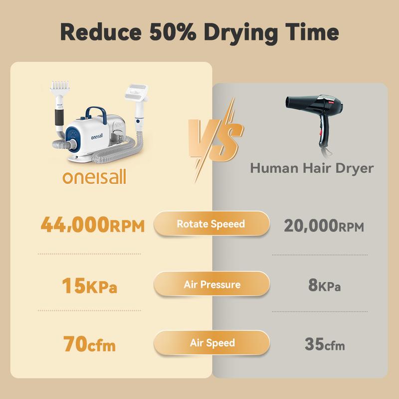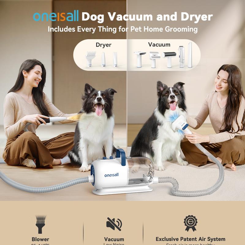 oneisall Dog Grooming Vacuum Blow Dryer and Clippers, Dog Grooming Kit for Shedding Drying Trimming Pet's Hair, 7 Levels of Blow Temperature, Adjustable Air Flow