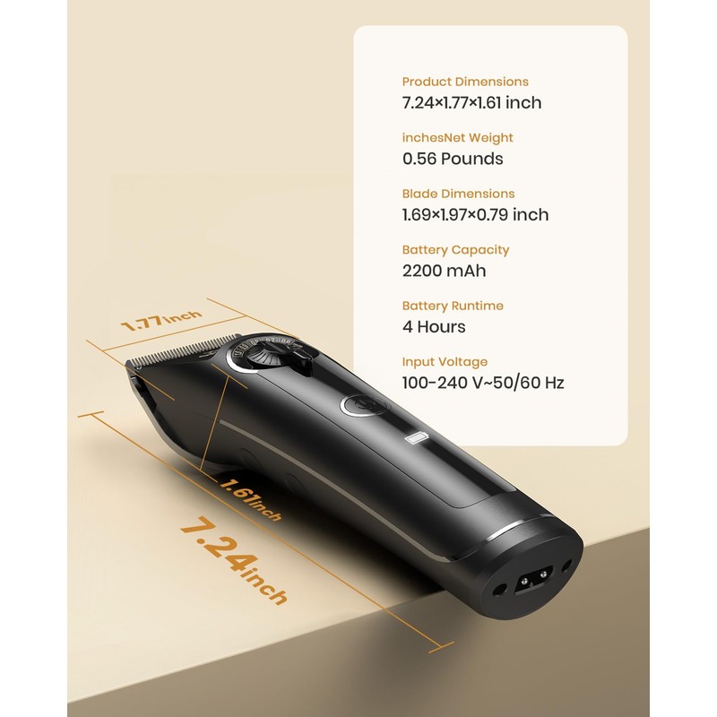 - Long Lasting Battery & LCD Indication: High Capacity Battery, which requires 3 hours charging time and last 4 hours. The LCD display would show how much power is left, helping you control the grooming work