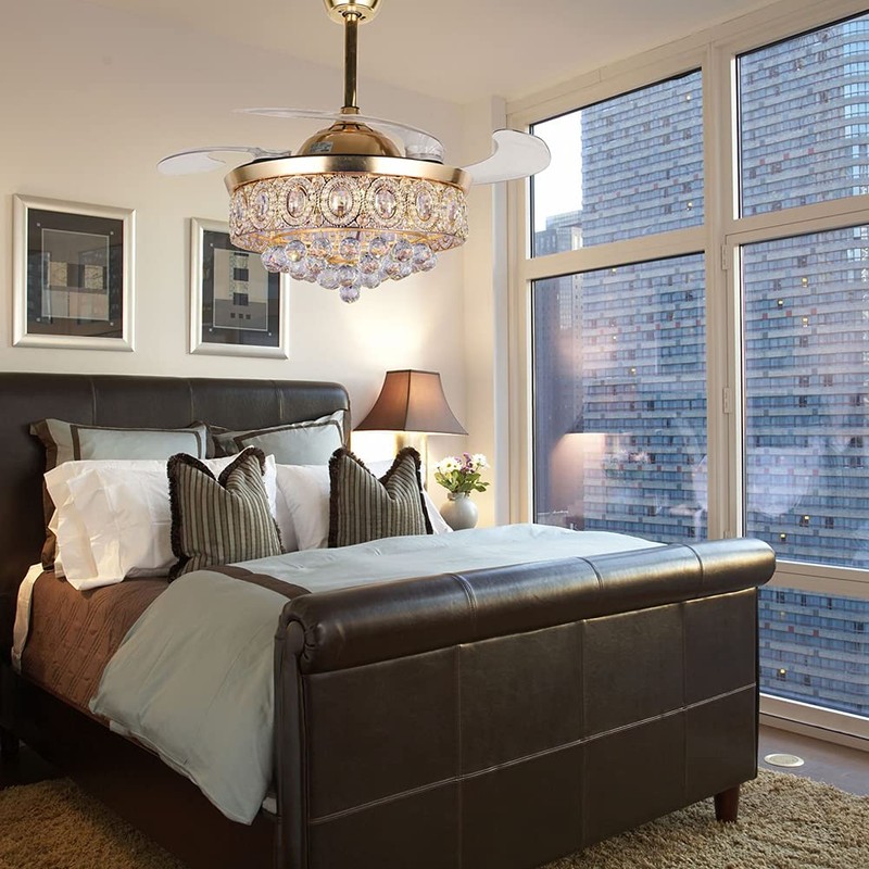 - [Crystal Retractable Ceiling Fan]: Chandelier and fan use top K9 crystal,the crystals are just clear and twinkling and have a subtle bit of color that softens the light.Suitable many styles of decoration.